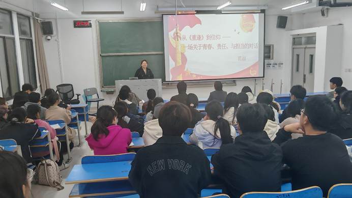 仪式结束后,范喆书记带领全体学员集中观看了红色微电影《重逢》。影片中跨越时空的情感联结、革命先辈与当代青年的精神共鸣,让在场学员深切体会到“信仰传承”的重量。随后,范喆书记对积极分子提出以下三点要求:一是立鸿鹄之志,树立远大理想;二是练过硬本领,珍惜时间;三是修高尚品德,诚实守信。最后,全体学员共同聆听歌曲《界碑》,并结合戍边故事理解家国情怀。
