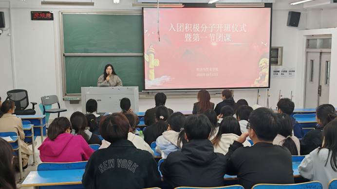 为强化入团积极分子理想信念教育,严把团员发展“入口关”,10月17日,经济与贸易学院在3105C举行入团积极分子暨第一次团课。经济与贸易学院党总支副书记范喆,团总支书记李珂,25级辅导老师秦兰慧、杨啸宇以及56名入团积极分子均参与此次团课。